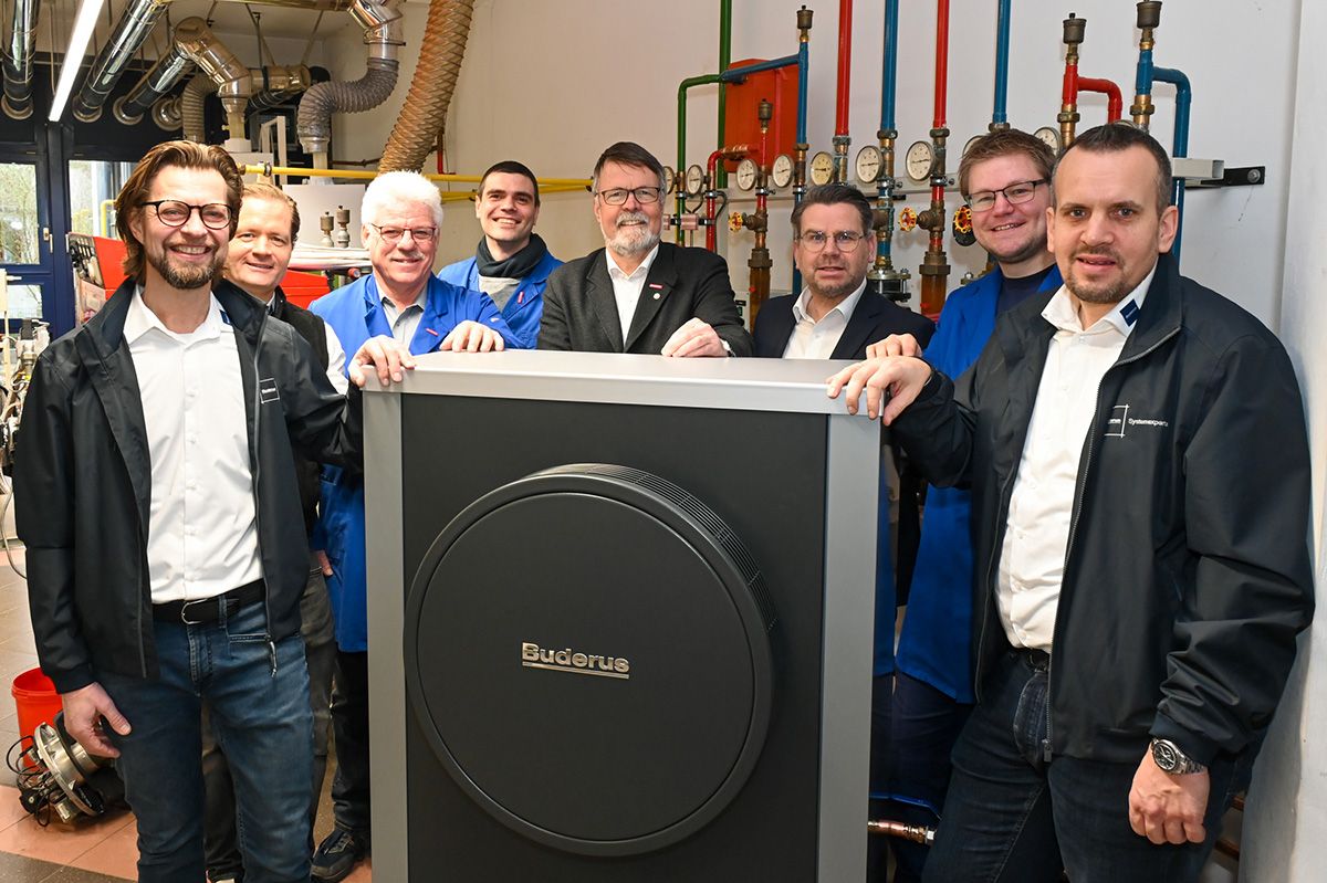 Handwerkliche Ausbildung auf Top-Niveau wollen die Innung für Sanitär- und Heizungstechnik im Rhein-Kreis und der Heiztechnik-Hersteller Buderus fördern: Eine Wärmepumpe und einen Gas-Brennwertkessel stellte das Unternehmen der Überbetrieblichen Ausbildungsstätte (ÜBA) der Innung zur Verfügung.