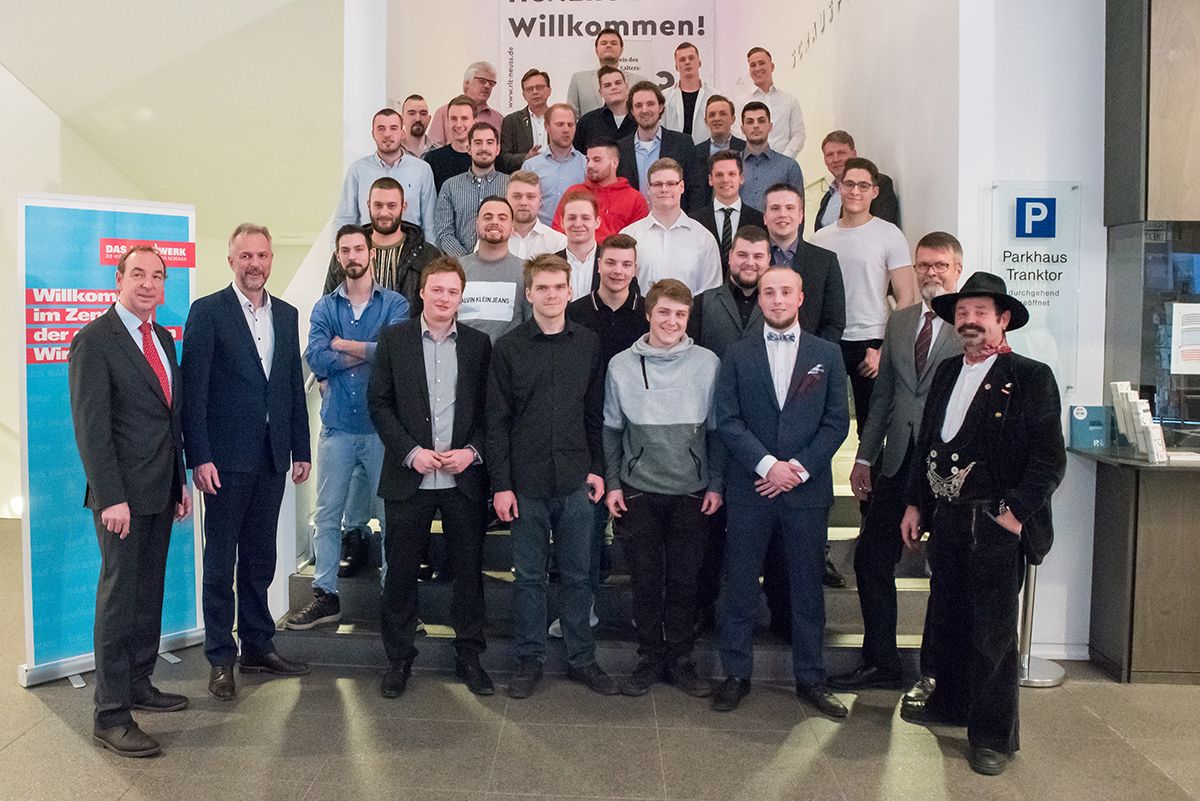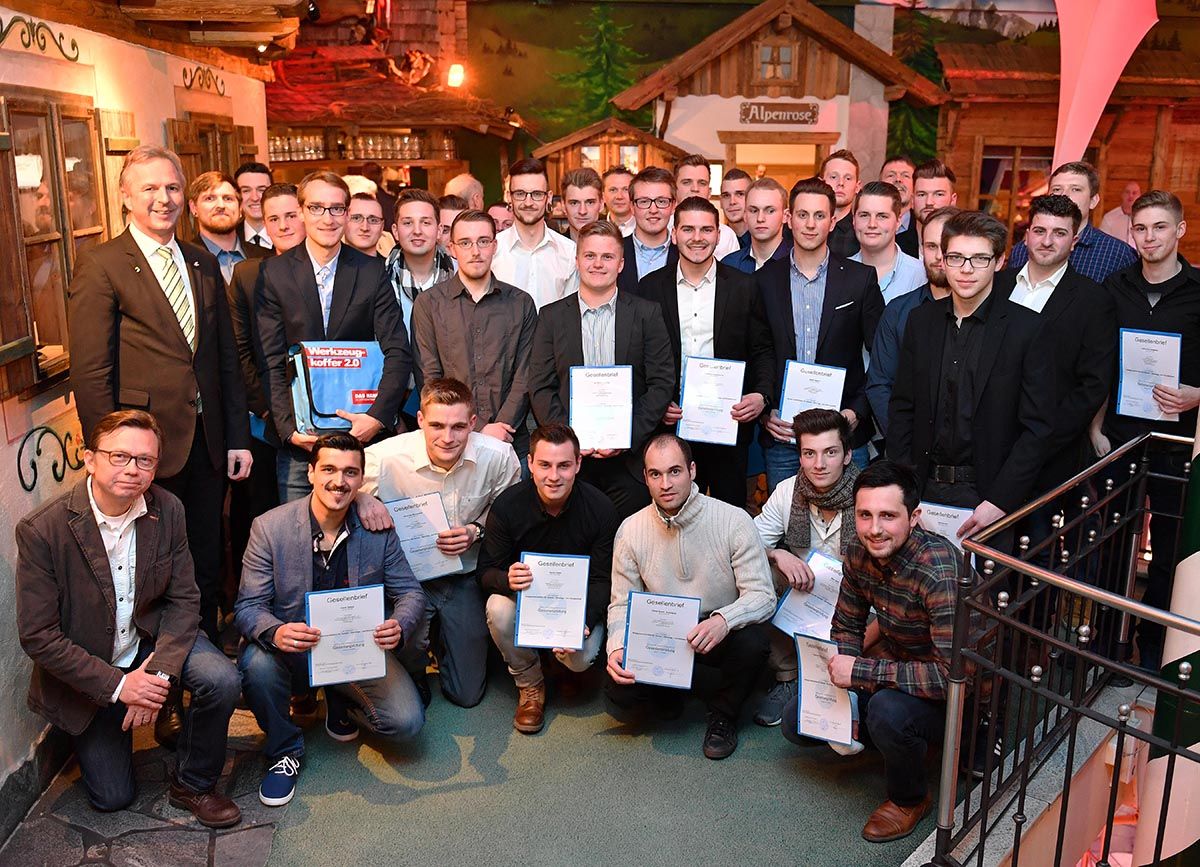 Die Hauptrollen spielten an diesem Abend 30 junge Männer, die mit dem Bestehen der Gesellenprüfung ihre Ausbildung im Handwerk erfolgreich abgeschlossen hatten. Obermeister Christoph Linden sprach sie von ihren bisherigen Pflichten als Auszubildende los. „Nach alter Handwerkstradition erhebe ich euch in den Gesellenstand“, rief Linden unter dem Applaus der Gäste.