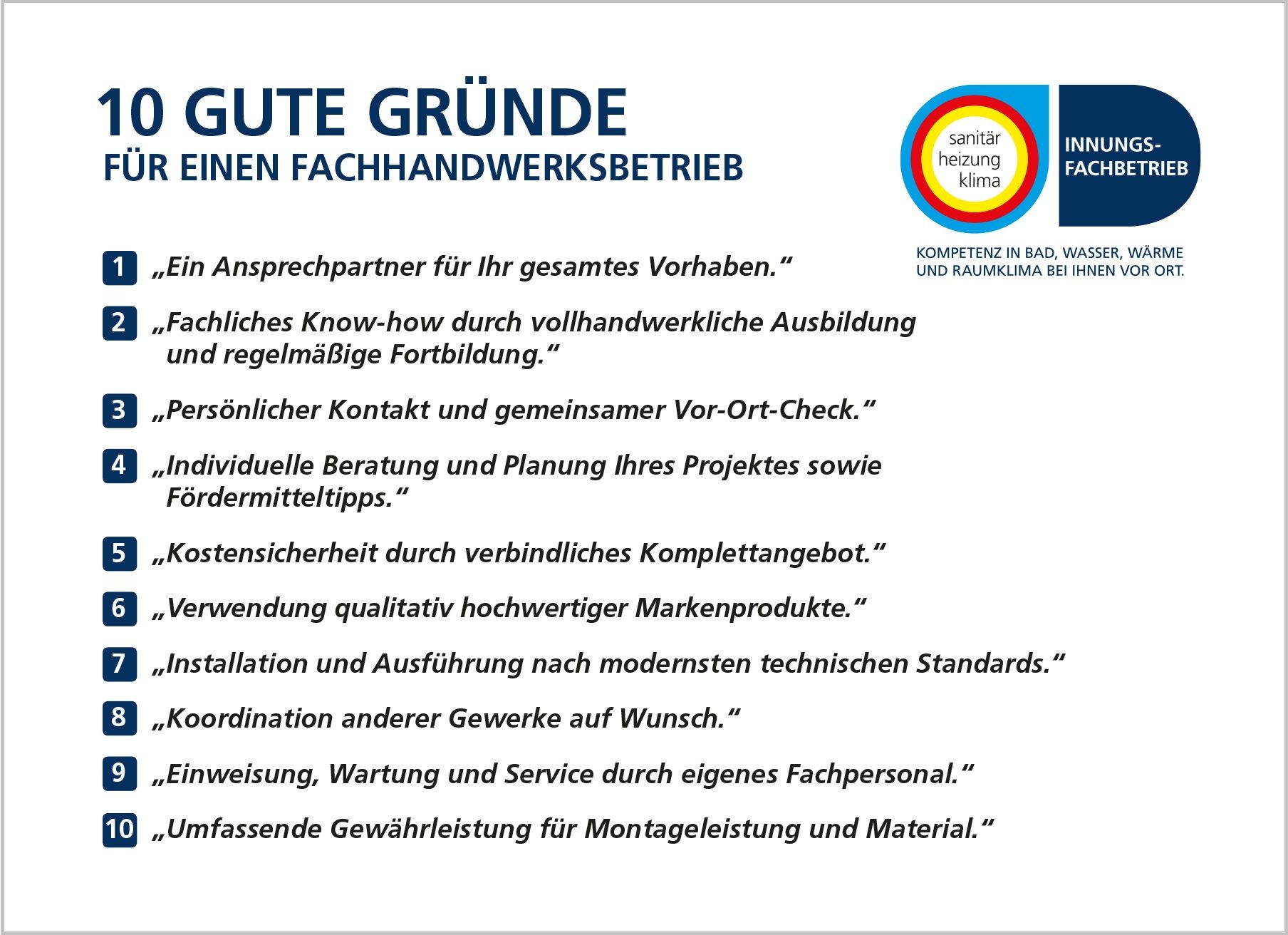 Wirklich gute Gründe für einen Innungs­fach­betrieb im Kurz­überblick!